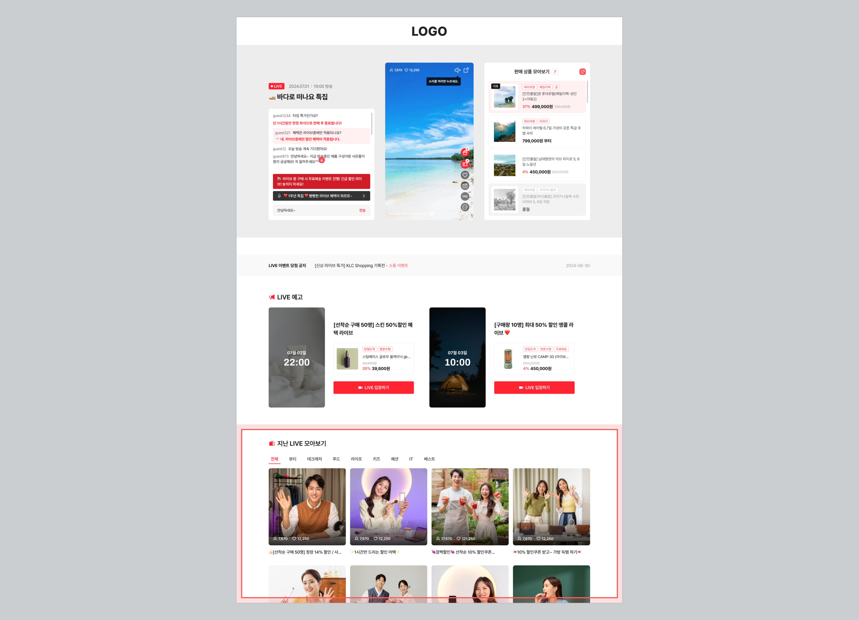 <figure><img src="https://2220260358-files.gitbook.io/~/files/v0/b/gitbook-x-prod.appspot.com/o/spaces%2Fh7xwbU7K6FFsg94OOZCj%2Fuploads%2F7ts3lDR6oxxeU8SDiR5D%2FVOD%20%EB%B0%A9%EC%86%A1%20%EC%A0%84%EC%8B%9C%20%ED%99%95%EC%9D%B8.png?alt=media&#x26;token=dc871a8a-1116-40eb-b8d9-520f4710705d" alt=""><figcaption><p>방송 전시 페이지 > 지난 LIVE 모아보기 영역</p></figcaption></figure>
