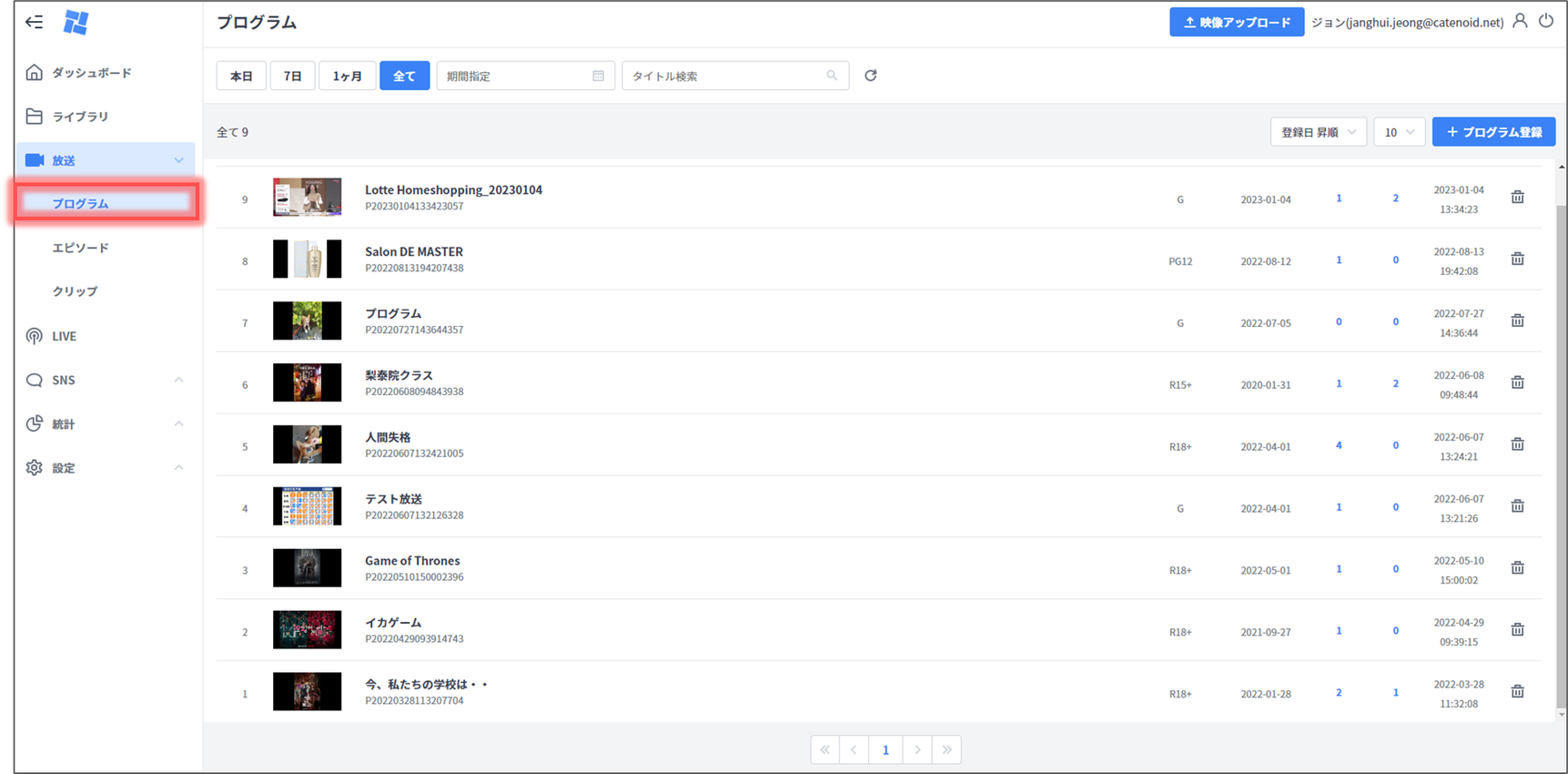 メディアコンテンツは放送の用途及び形式などの分類基準に合わせてプログラムで企画・編成されて視聴者に提供されます。Loomexのプログラムはプログラム名、視聴年齢制限、放送開始日などの基本的なメタデータが含まれていて、プログラムにエピソードとクリップを連係することで一つの放送プログラムとして管理することができます。