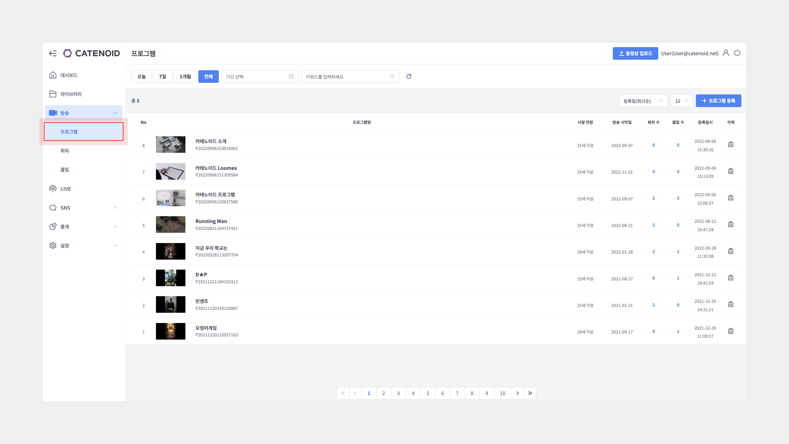 미디어 콘텐츠는 방송 기능 및 형식과 같은 분류 기준에 따라 프로그램으로 기획되거나 편성되어 시청자에게 제공됩니다. Loomex의 프로그램은 프로그램명, 시청 연령, 방송 시작일 등의 콘텐츠 메타데이터를 포함하고 있으며 프로그램에 회차, 클립 등의 동영상을 연결하여 프로그램을 관리할 수 있습니다.
