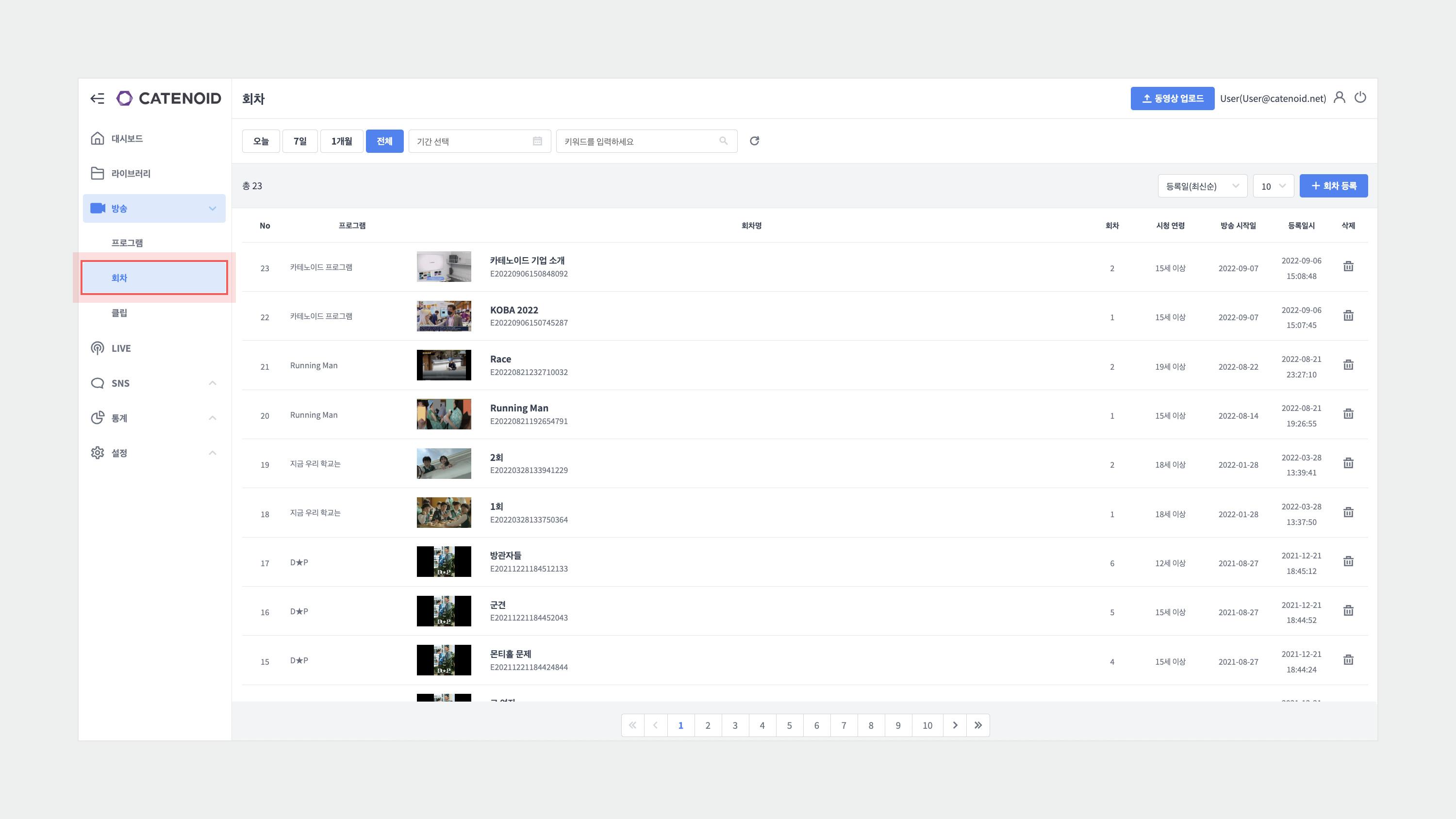 회차는 에피소드를 의미하며 1회의 방송분을 나타냅니다. 미디어 콘텐츠의 편당 방영 횟수가 늘어남에 따라 하나의 프로그램을 여러 회차로 나누어 방영할 수 있습니다. Loomex의 회차는 회차 정보, 시청 연령, 회차명 등의 메타데이터를 추가하여 회차별로 관리할 수 있습니다.
