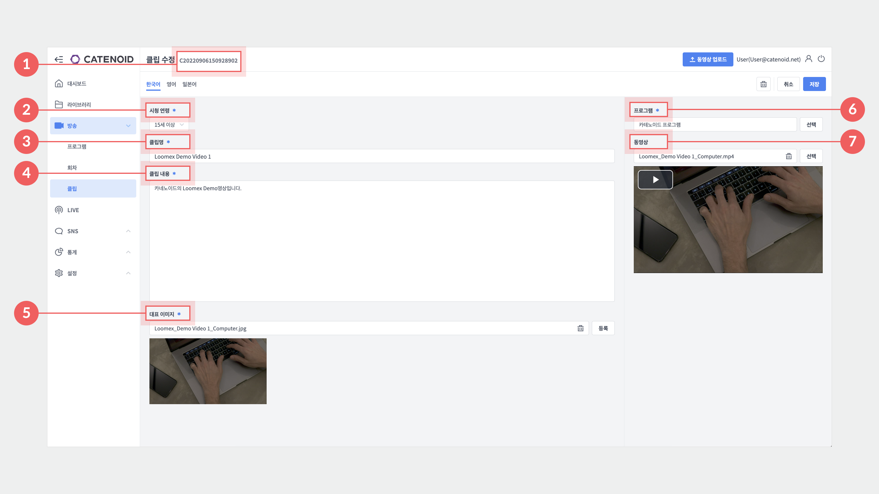 ### **클립 등록 및 수정** <a href="#loomex" id="loomex"></a>